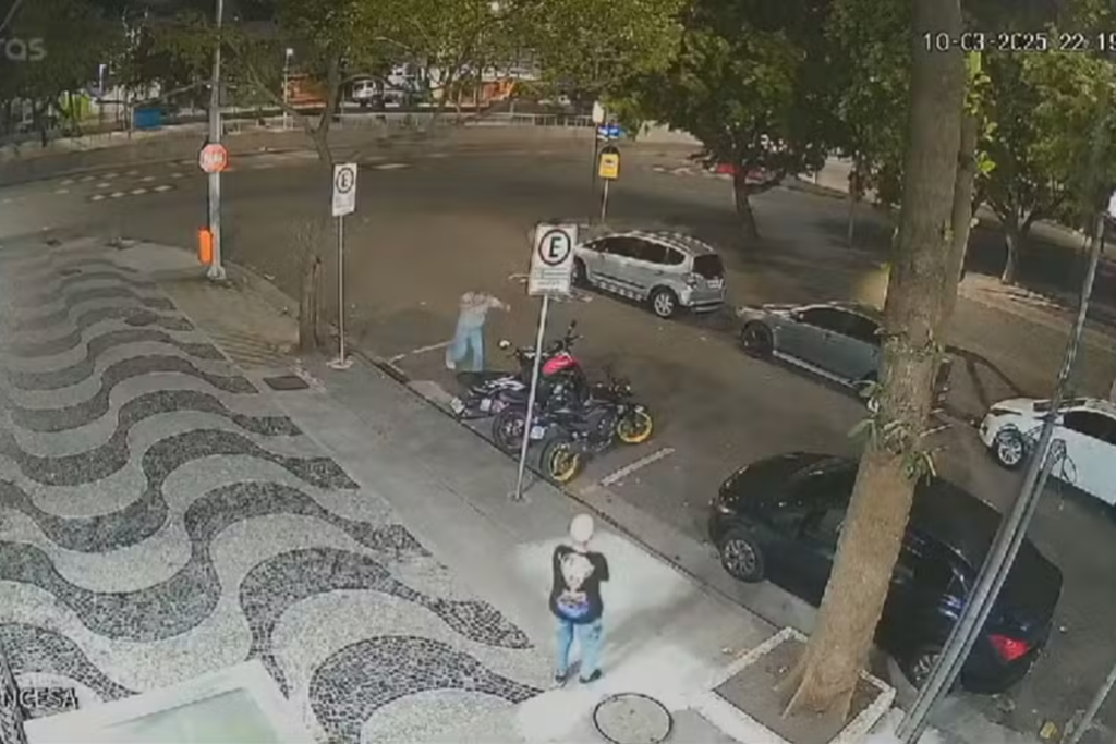 Um norueguês de 23 anos vandalizou veículos e placas de sinalização em Copacabana, sendo flagrado por moradores. Ele foi detido, autuado por dano qualificado e liberado após pagar fiança.