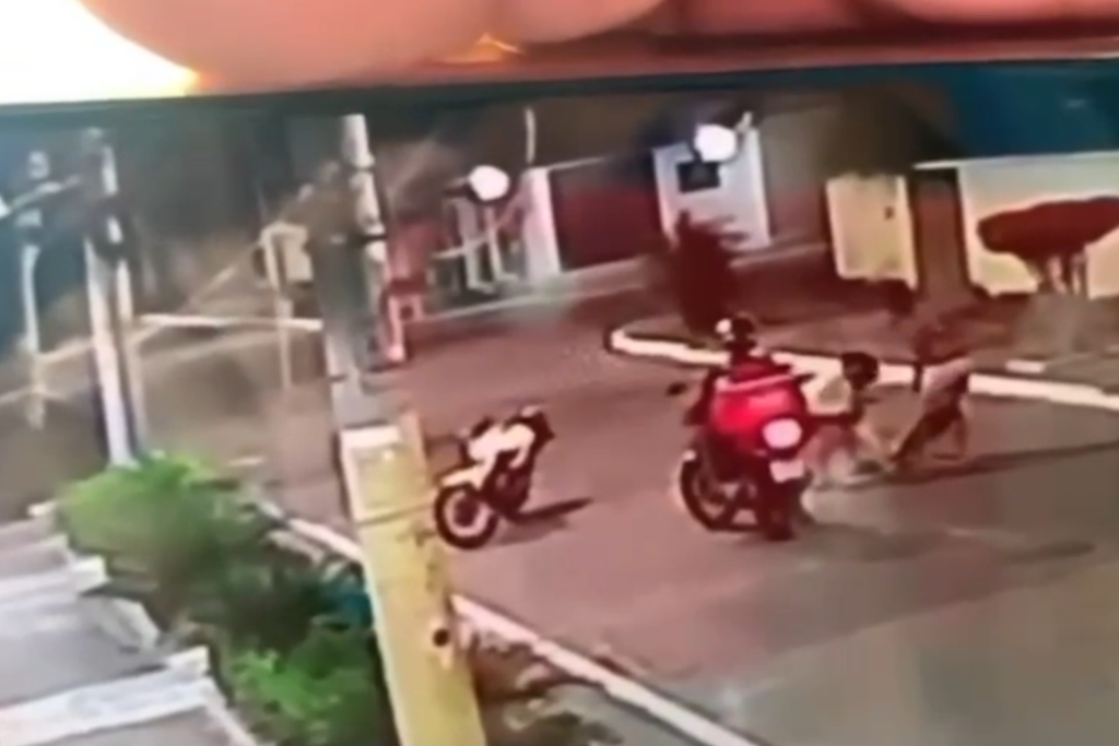 Três homens armados assaltaram um motociclista em Nova Iguaçu, levando sua moto e até sua bermuda. A polícia analisa imagens e busca informações sobre os envolvidos.
