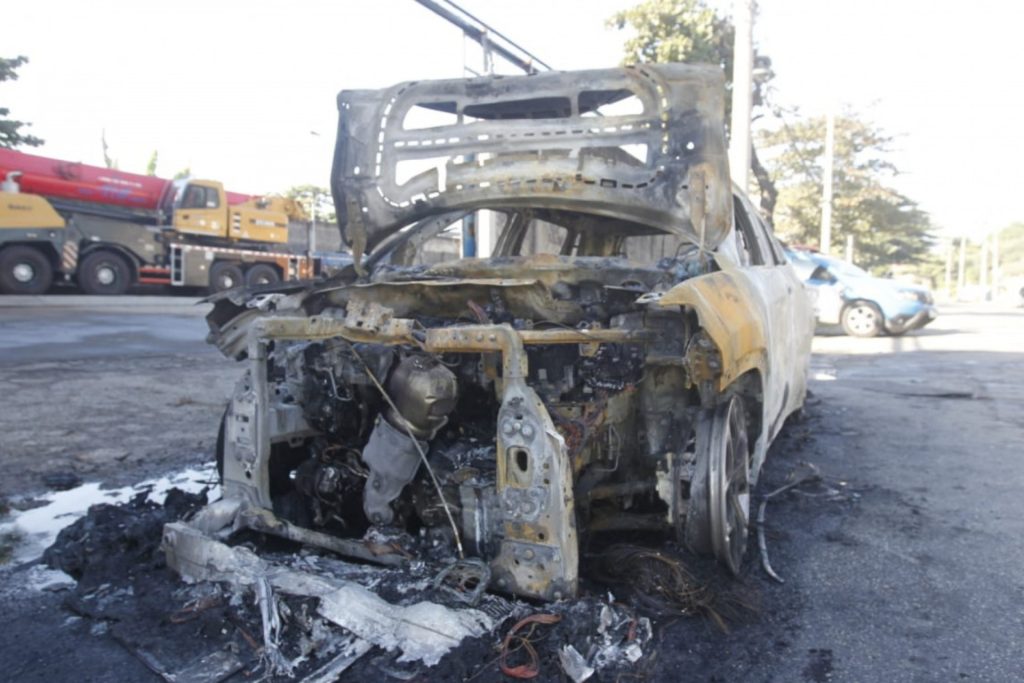 Carro pega fogo na Zona Portuária do Rio e é completamente destruído