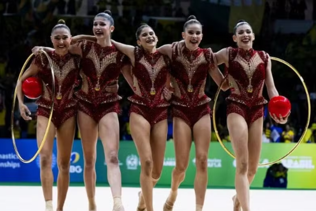 O Brasil conquistou a prata na série mista do Mundial de Ginástica Rítmica 2025 no Rio, com nota recorde e apresentação ao som de “Evidências”.