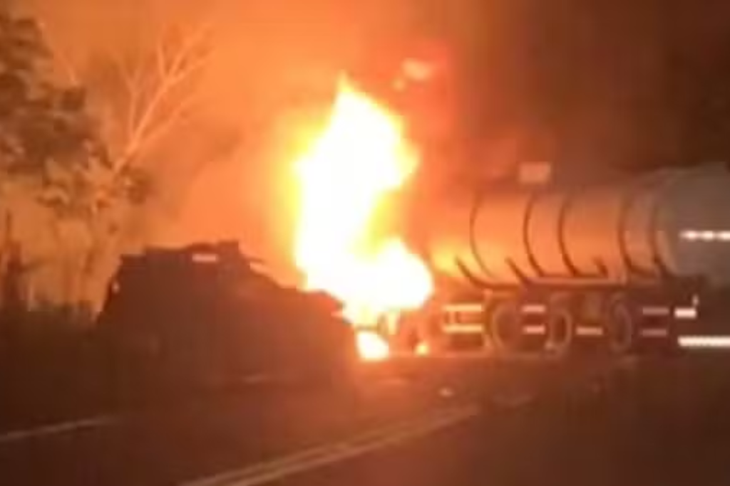 Um carro e um caminhão-tanque colidiram na BR-101, em Mangaratiba, na noite desta quinta (24). O impacto provocou explosão, incêndio e vazamento de combustível. Uma pessoa morreu. A rodovia foi totalmente interditada nos dois sentidos e não há previsão de liberação. Bombeiros e PRF seguem no local, e as causas do acidente ainda são investigadas.