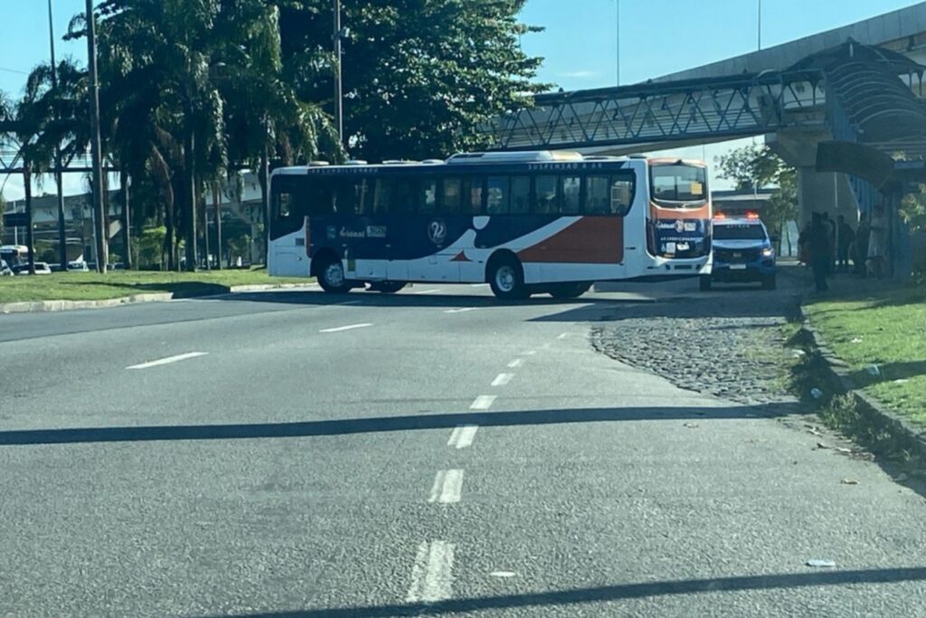 Criminosos atravessam ônibus na Ilha do Governador e bloqueiam acesso ao Aeroporto do Galeão