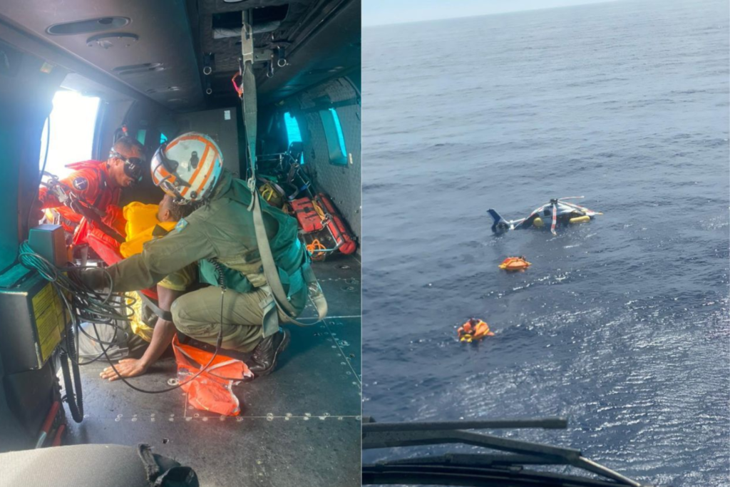 Helicóptero realiza pouso de emergência no mar de Cabo Frio e oito pessoas são resgatadas