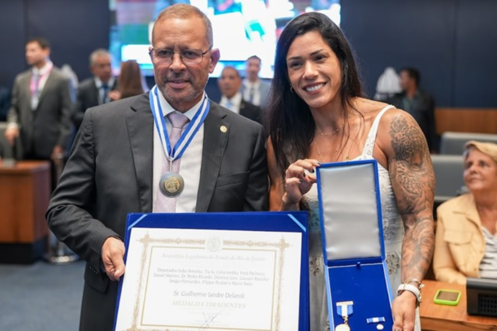 O presidente em exercício da Alerj, Guilherme Delaroli, recebeu a Medalha Tiradentes durante sessão plenária no Rio de Janeiro. Além da homenagem, ele anunciou uma semana legislativa dedicada exclusivamente à análise de projetos voltados aos direitos das mulheres, reforçando o compromisso do Parlamento com políticas públicas de igualdade, proteção e oportunidades.