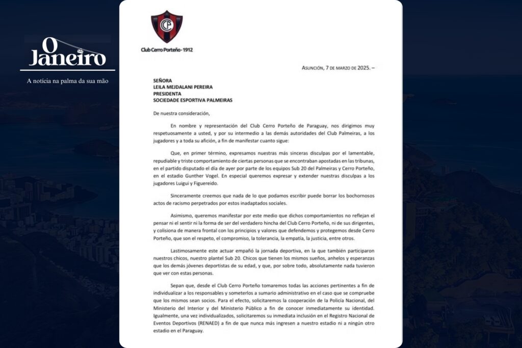 O Palmeiras venceu o Cerro Porteño por 3 a 0 na Libertadores Sub-20, mas a partida ficou marcada por um caso de racismo. Durante o jogo, um torcedor paraguaio imitou um macaco e cuspiu em direção ao atacante Luighi, do Verdão, que deixou o campo revoltado e chorando. A repercussão foi imediata, e o Cerro Porteño se comprometeu a banir o agressor dos estádios do Paraguai.