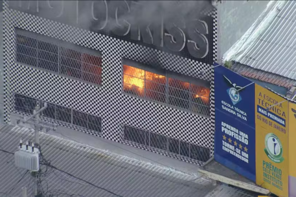 Um incêndio de grandes proporções atingiu um galpão da empresa Motocriss na manhã desta segunda-feira (9), em Ramos, na Zona Norte do Rio de Janeiro.