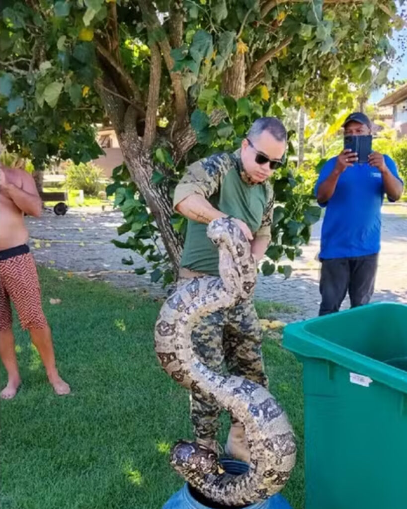 Quando os agentes chegaram ao local, a situação já estava parcialmente controlada. A serpente havia sido colocada dentro de um recipiente de lixo, reduzindo o risco de fuga ou ataque.