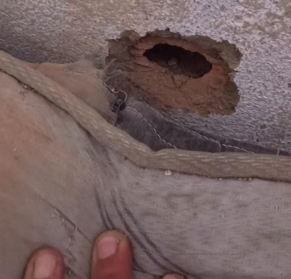 Buraco provocado por tiro na casa de jovem baleada na Barreira do Vasco. — Foto: Arquivo pessoal