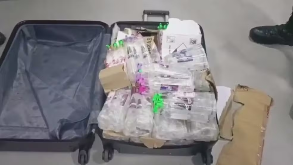 Frascos de lança-perfume apreendidos pela PM na Rodoviária do Rio — Foto: Divulgação/ PMERJ