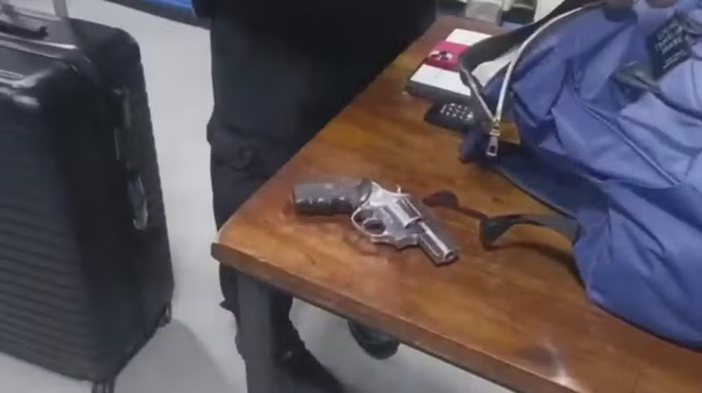 De acordo com o Batalhão de Policiamento em Áreas Turísticas, a suspeita usava a criança para tentar despistar a fiscalização nas plataformas do terminal. A equipe encontrou também um revólver calibre 38 e munições.