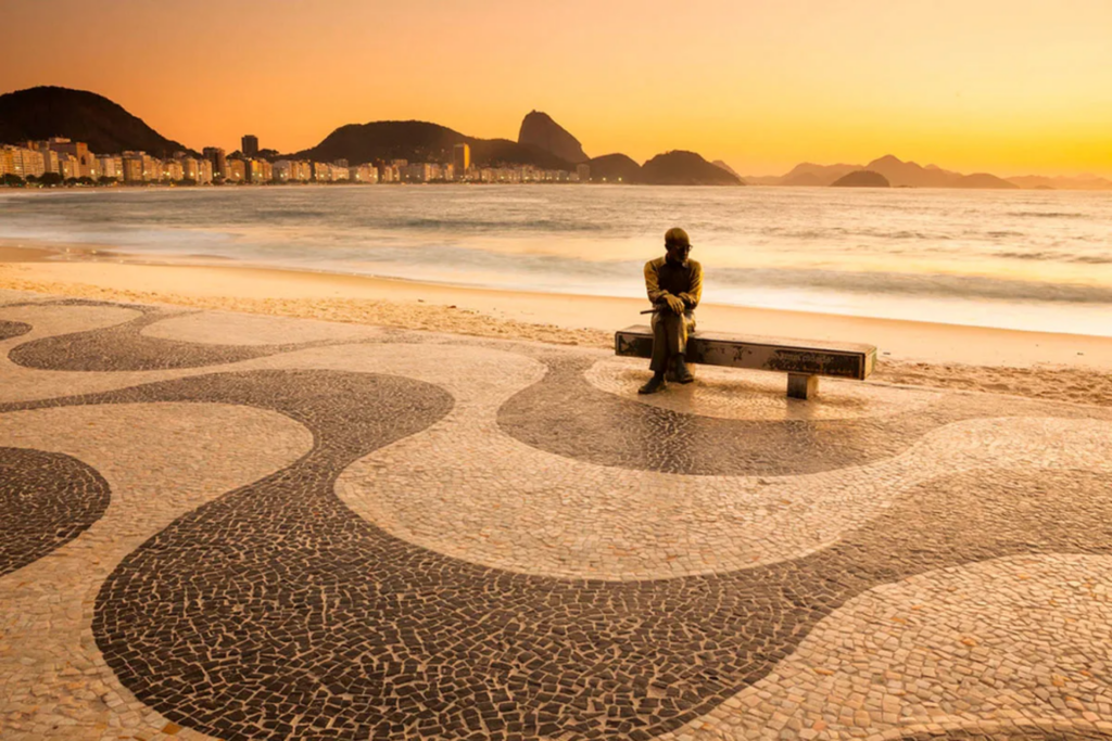 Fonte: Estátua do poeta Carlos Drummond de Andrade, na Praia de Copacabana