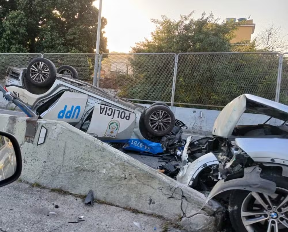 De acordo com informações da Polícia Militar e da concessionária responsável pela via, o acidente ocorreu por volta das 5h30 da manhã. A viatura, pertencente a uma Unidade de Polícia Pacificadora (UPP), estava posicionada em um dos acessos da Linha Amarela quando foi atingida com força por um carro de passeio que trafegava em alta velocidade.